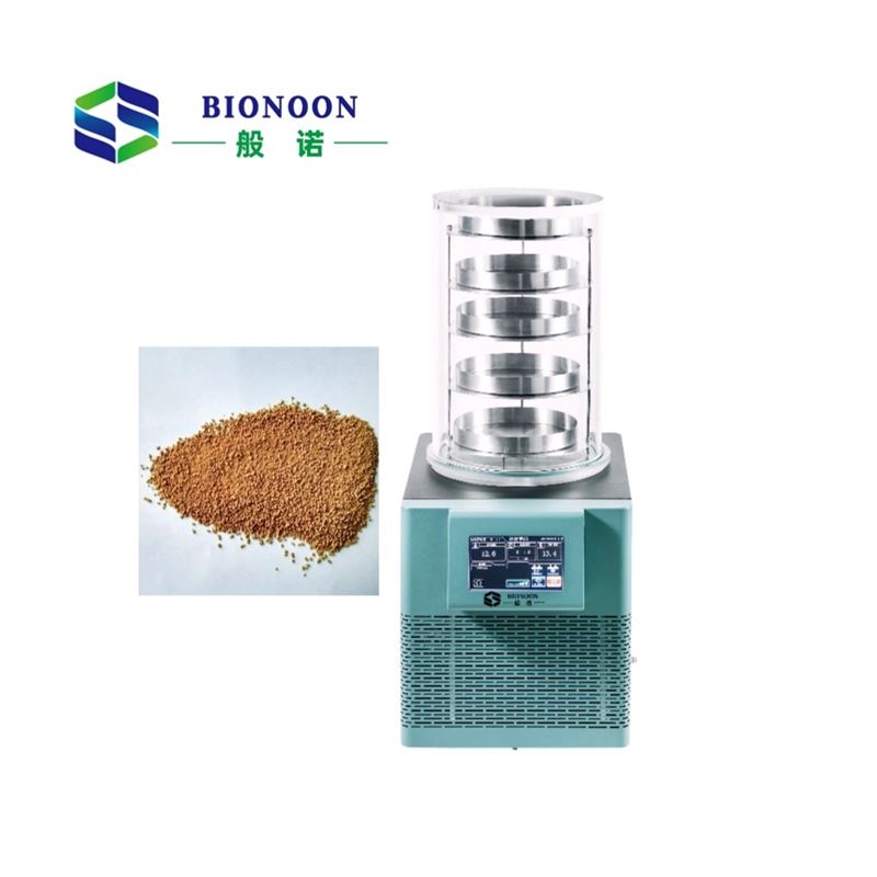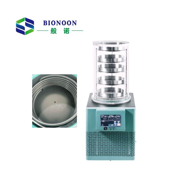 The Laboratory-Scale Standard Vacuum Freeze-Dryer is mainly used in fields including medicine, pharmaceuticals, biological research, chemical engineering, and food industry. Items treated with freeze-drying are easy to store long-term, and can recover to the pre-freeze-dried state while maintaining original biochemical properties after rehydration. The BIONOON-22A Vacuum Freeze-Dryer is suitable for freeze-drying conventional bulk materials (liquid, paste, solid). It can be used with vials, and after sample freeze-drying, capping and sealing can be directly completed in the drying chamber.