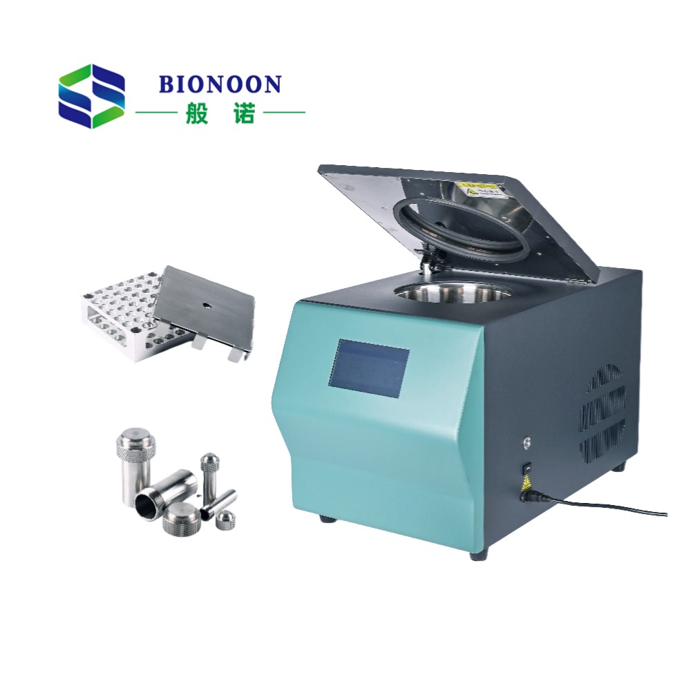 The BIONOON high-throughput frozen grinding mill is specially developed for grinding heat-sensitive samples. It can achieve powder mixing and homogenization in just a few seconds. It is also suitable for biological cell disruption and DNA/RNA extraction. BIONOON’s excellent performance and flexibility ensure its position in the market.