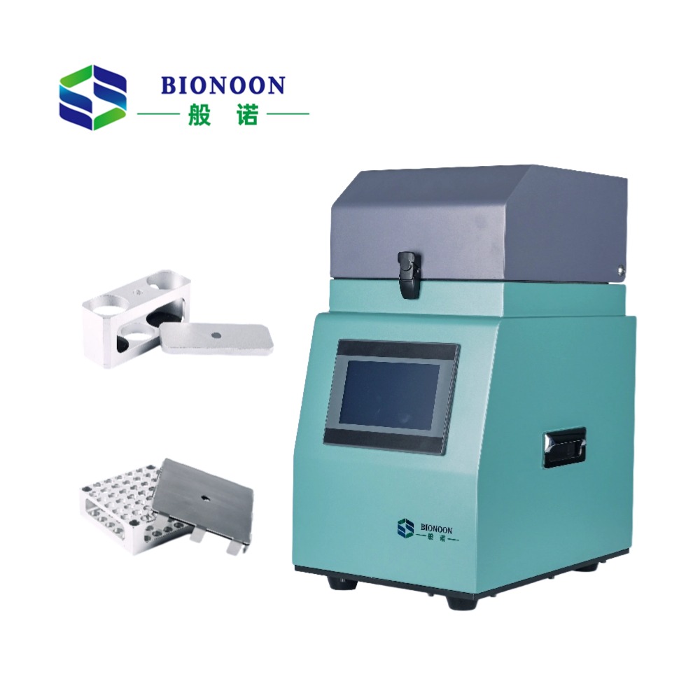 The main purpose of the BIONOON-576 Ultra-High-Throughput Grinding Mill is for crushing, mixing, homogenization, and cell disruption; it is used for sample pretreatment of biological samples and high-throughput automated rapid genome extraction.