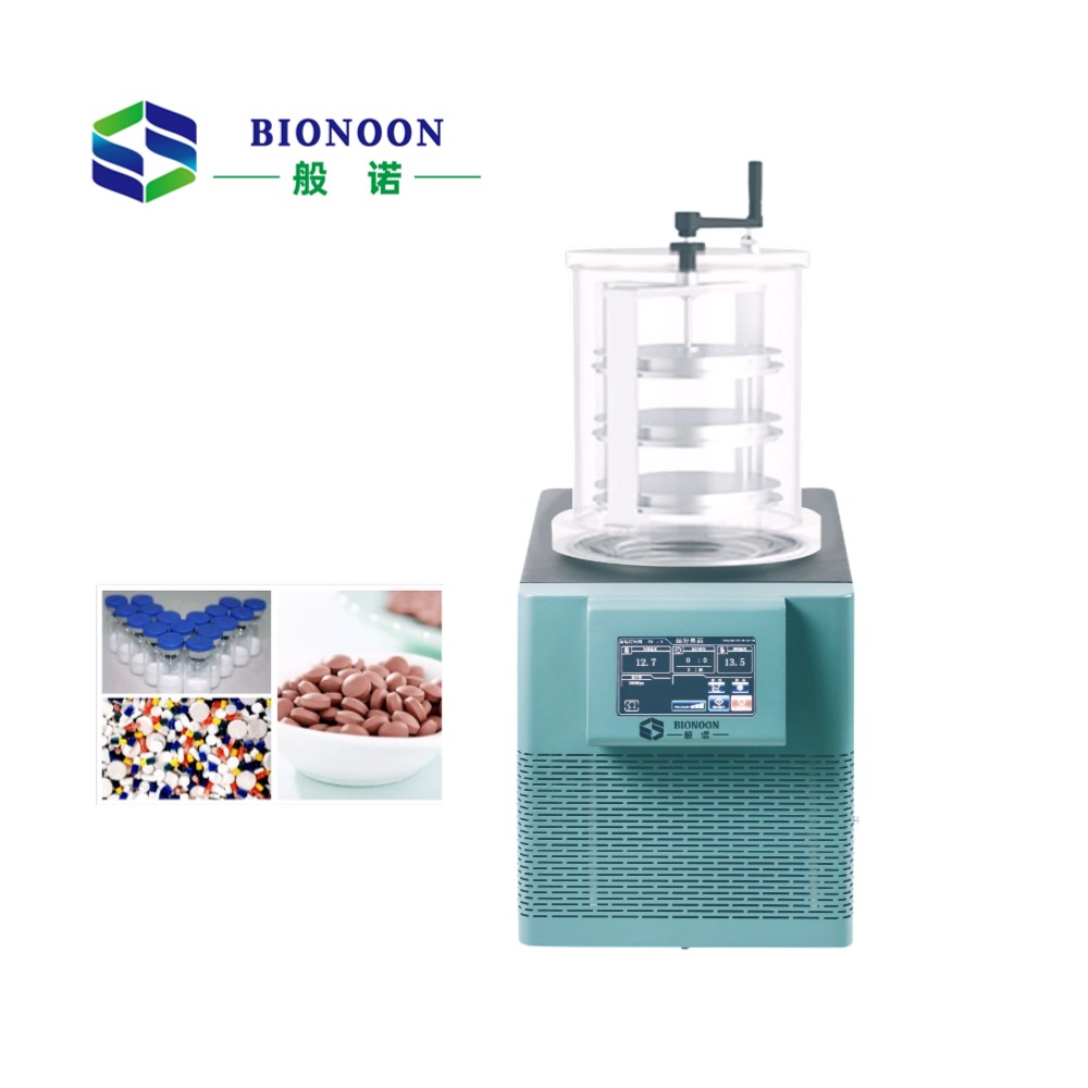 The BIONOON-22B is designed for freeze-drying bulk materials (liquid, paste, solid) and compatible with vials. After drying, samples can be directly sealed in the chamber via its capping mechanism. Its 4 sample trays (Φ220mm) and 0.16㎡ freeze-drying area enable efficient processing of diverse samples.