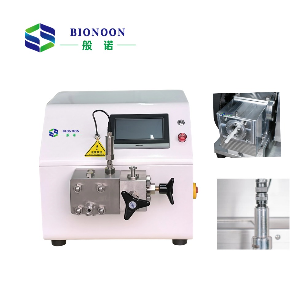 The high-pressure homogenizer employs a reciprocating plunger pump to draw samples through a single-phase valve into the high-pressure pump head. The sample is then forced into a narrow gap (the homogenizing valve). As particles pass through this valve, they undergo extreme compression at pressures as high as 1000 bar. Upon exiting the valve, the particles return to atmospheric pressure. This instantaneous pressure release achieves uniform and fine particle refinement. Generally, a greater pressure differential yields superior homogenization. During this process, the extreme velocity and unique trajectory generate explosive forces alongside immense shear and impact forces, collectively achieving excellent homogenization of the sample.