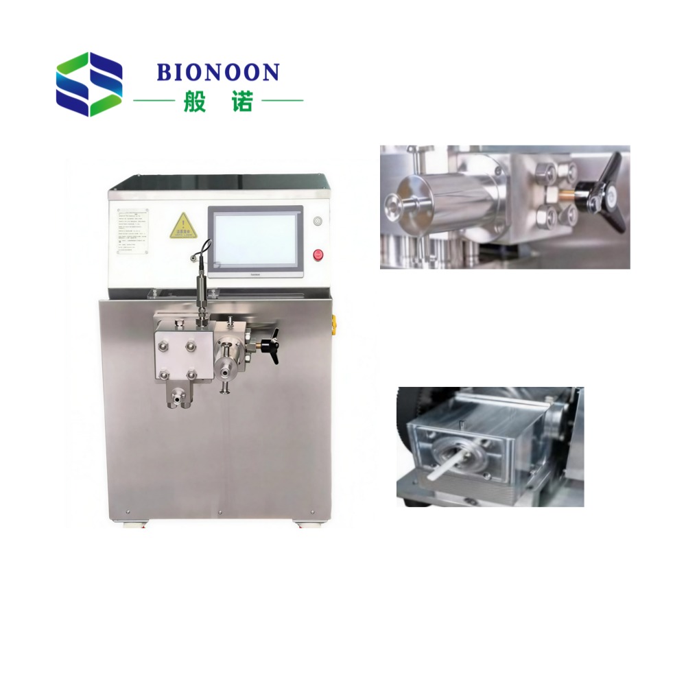 The high-pressure homogenizer employs a reciprocating plunger pump to draw samples through a single-phase valve into the high-pressure pump head. The sample is then forced into a narrow gap (the homogenizing valve). As particles pass through this valve, they undergo extreme compression at pressures as high as 1000 bar. Upon exiting the valve, the particles return to atmospheric pressure. This instantaneous pressure release achieves uniform and fine particle refinement. Generally, a greater pressure differential yields superior homogenization. During this process, the extreme velocity and unique trajectory generate explosive forces alongside immense shear and impact forces, collectively achieving excellent homogenization of the sample.